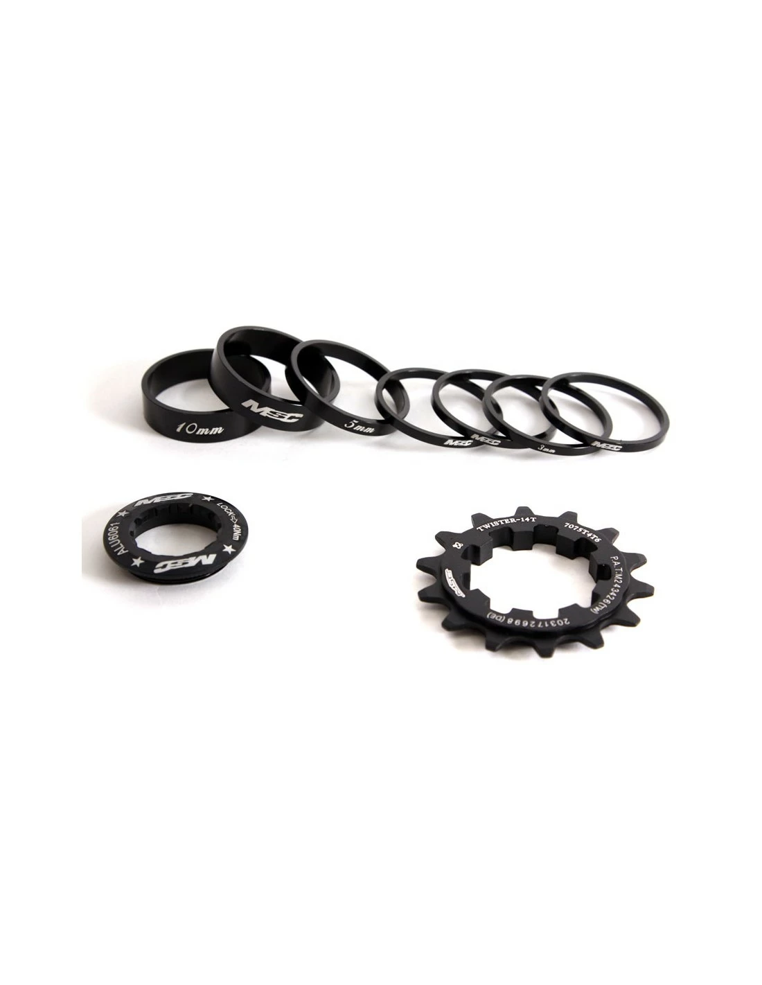 Arandelas y piñón en alu7075T6 con superficie oversize para mejorar el agarre y tensión de la cadena y prolongar la vida útil del buje trasero
